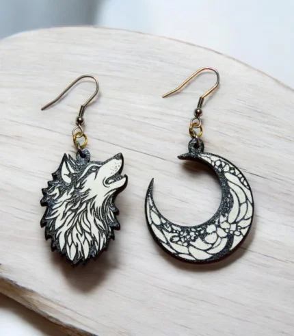 Descubre el Arete Lobo y Luna, la fusión perfecta entre modernidad y estilo. Fabricado en MDF de alta calidad con tecnología de corte láser, este accesorio destaca en una vibrante gama de colores. Ideal para transformar tu look o sorprender a alguien especial, su diseño innovador y acabado impecable lo convierten en el regalo perfecto. ¡Atrévete a marcar tendencia con Zephyros Art!